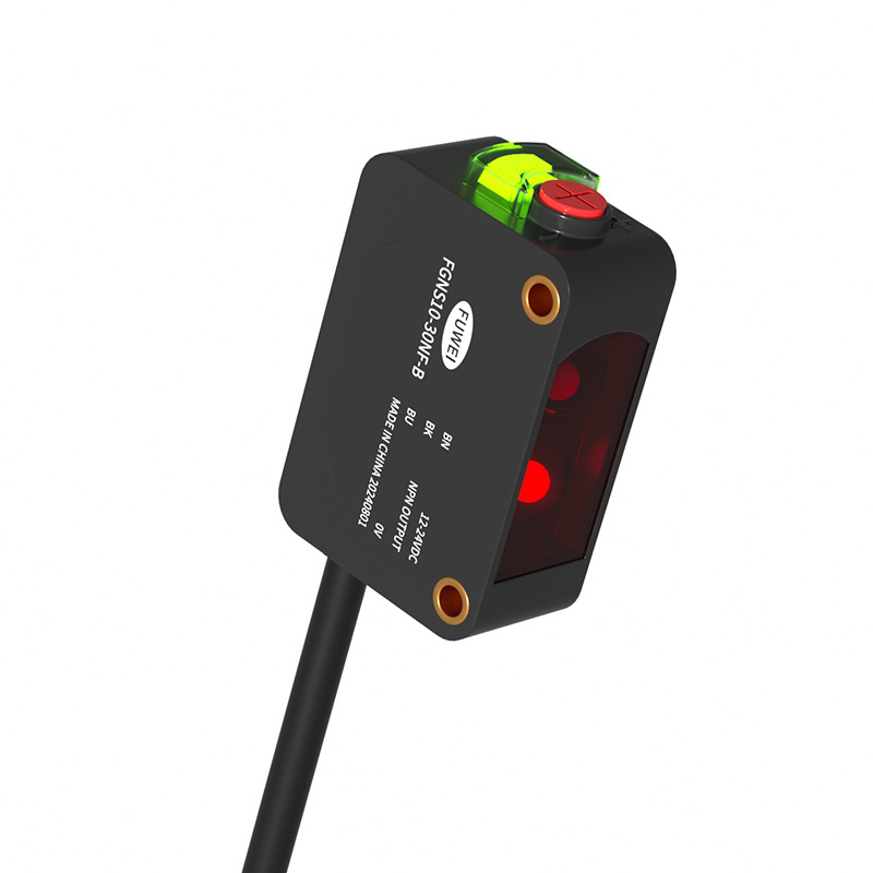 Der Erkennungsabstand des fotoelektrischen Sensors FGNS10-30 mit Hintergrundunterdrückung wird nicht durch die Farbe des Objekts beeinflusst;