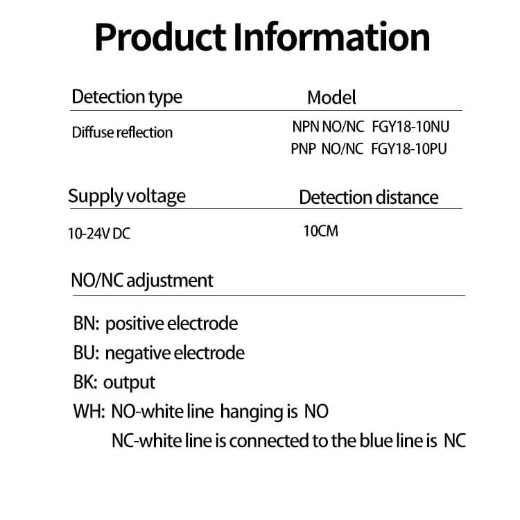 Der FGY18-10NU-Sensor zeichnet sich durch seine Erkennungsfähigkeiten aus und bietet einen beeindruckenden Erkennungsabstand, der auf eine Reihe von Anwendungen zugeschnitten ist. Unabhängig davon, ob Sie präzise Messungen in Automatisierungssystemen, Maschinensteuerungen oder anderen industriellen Umgebungen benötigen, liefert dieser Sensor zuverlässige und genaue Ergebnisse.