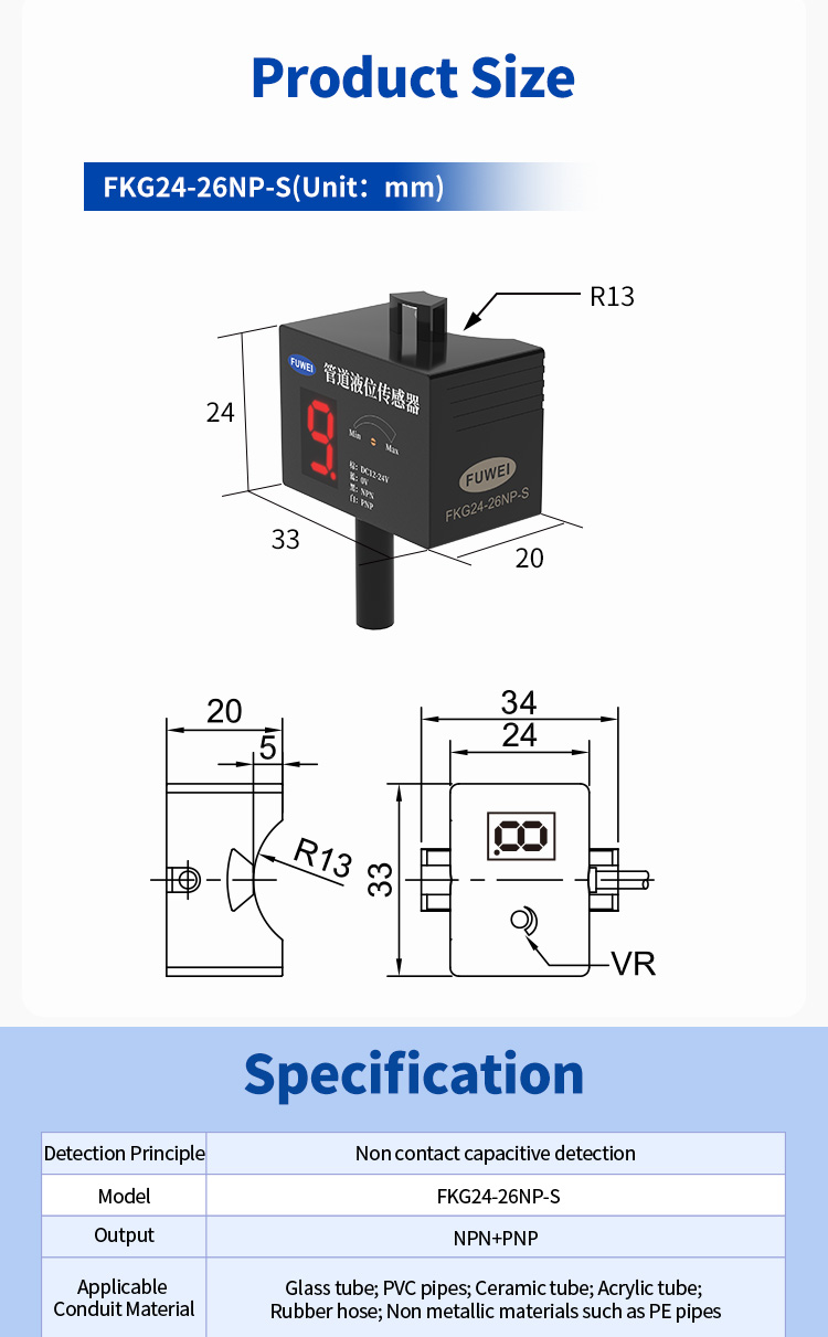 FKG24-26NP-Serie Rohrflüssigkeitsspiegel-Sensor-Kapazitivprinzip, nicht leicht durch Rohrmaterial zu beeinflussen