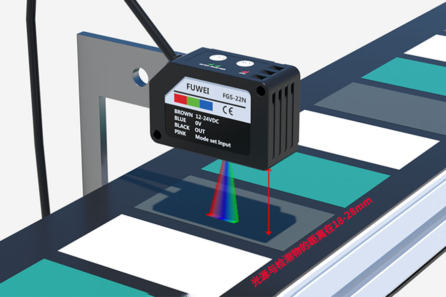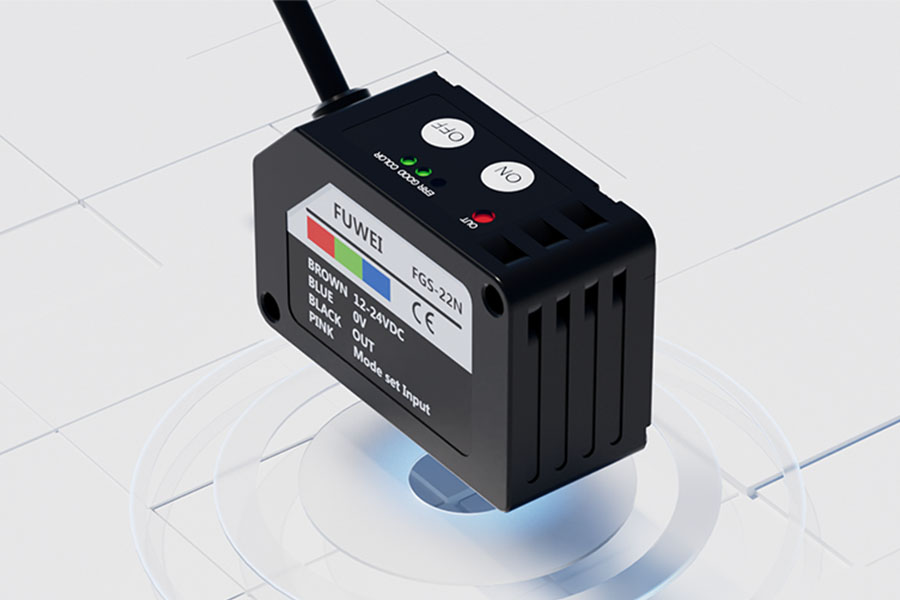 Der Farbmarkierungssensor der FGS-22N-Serie von Fuwei Electronics verfügt über integrierte unabhängige rote, grüne und blaue LED-Lichtquellen. Es wählt automatisch die optimale LED-Kombination basierend auf den Oberflächeneigenschaften des Zielobjekts aus.