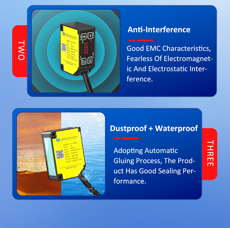 Das kompakte Design ist ein weiterer Highlight der FSD25 -Serie. Die kompakte Größe und der kleine Lichtpunkt ermöglichen es ihm, in schmalen Räumen wie Roboterarmen und Förderbandlücken leicht zu installieren, wodurch sich die Herausforderung der Herausforderung traditioneller Sensoren befasst, zu groß zu sein, um in Präzisionsgeräte zu passen. Dieses platzfreundliche Design ermöglicht eine flexiblere Layout automatisierter Produktionslinien, insbesondere für Präzisionsferiensektoren wie 3C-Elektronik und medizinische Geräte.