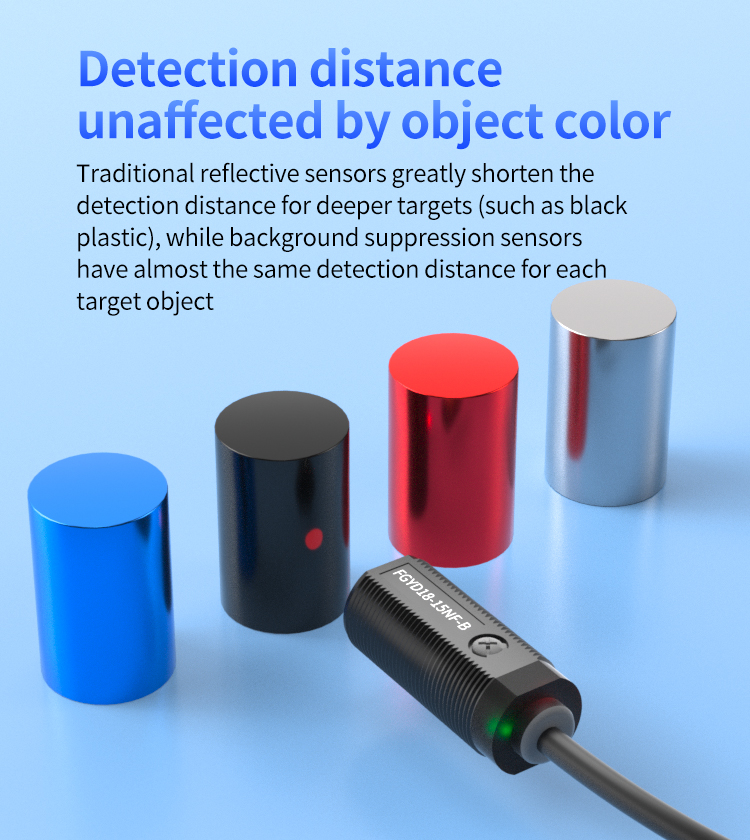 Ingenieur Zhang entschied sich für den Test der hochpräzisen fotoelektrischen Sensoren der FGYD18-Serie mit Hintergrundunterdrückung. Ihr herausragendes Merkmal liegt in der „Aufrechterhaltung der Erkennungsreichweite unabhängig von der Objektfarbe“. Unabhängig davon, ob schwarze, weiße oder reflektierende Metallziele erkannt werden, erfassen die Sensoren innerhalb des festgelegten 150-mm-Bereichs genau und verhindern so effektiv Erkennungsfehler aufgrund von Farbabweichungen.