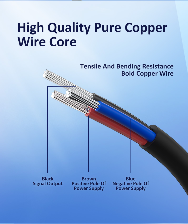 A: Ja, der Sensor wird mit einem vorverdrahteten, hochwertigen Kabel mit reinem Kupferkern geliefert. Standardlängen betragen typischerweise 2 Meter. Sonderlängen sind auf Anfrage erhältlich.